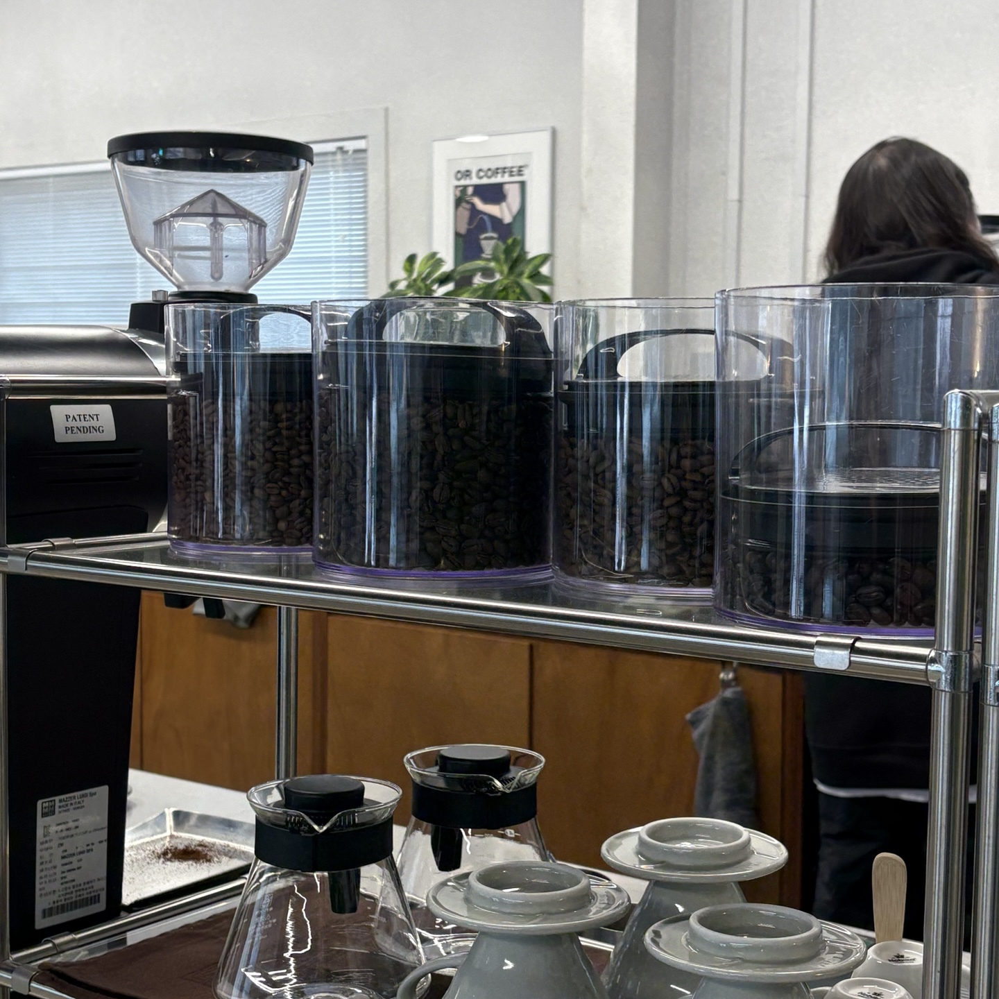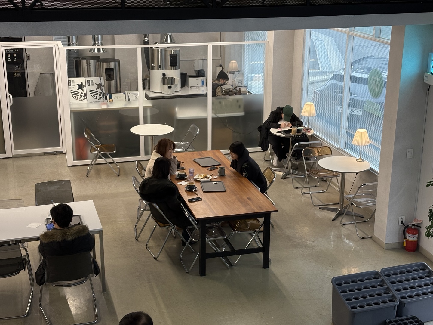 1층 공간에서는 로스팅하는 걸 보면서, 에스프레소를 내리는 모습을 보면서, 드립을 내리는 모습을 보면서