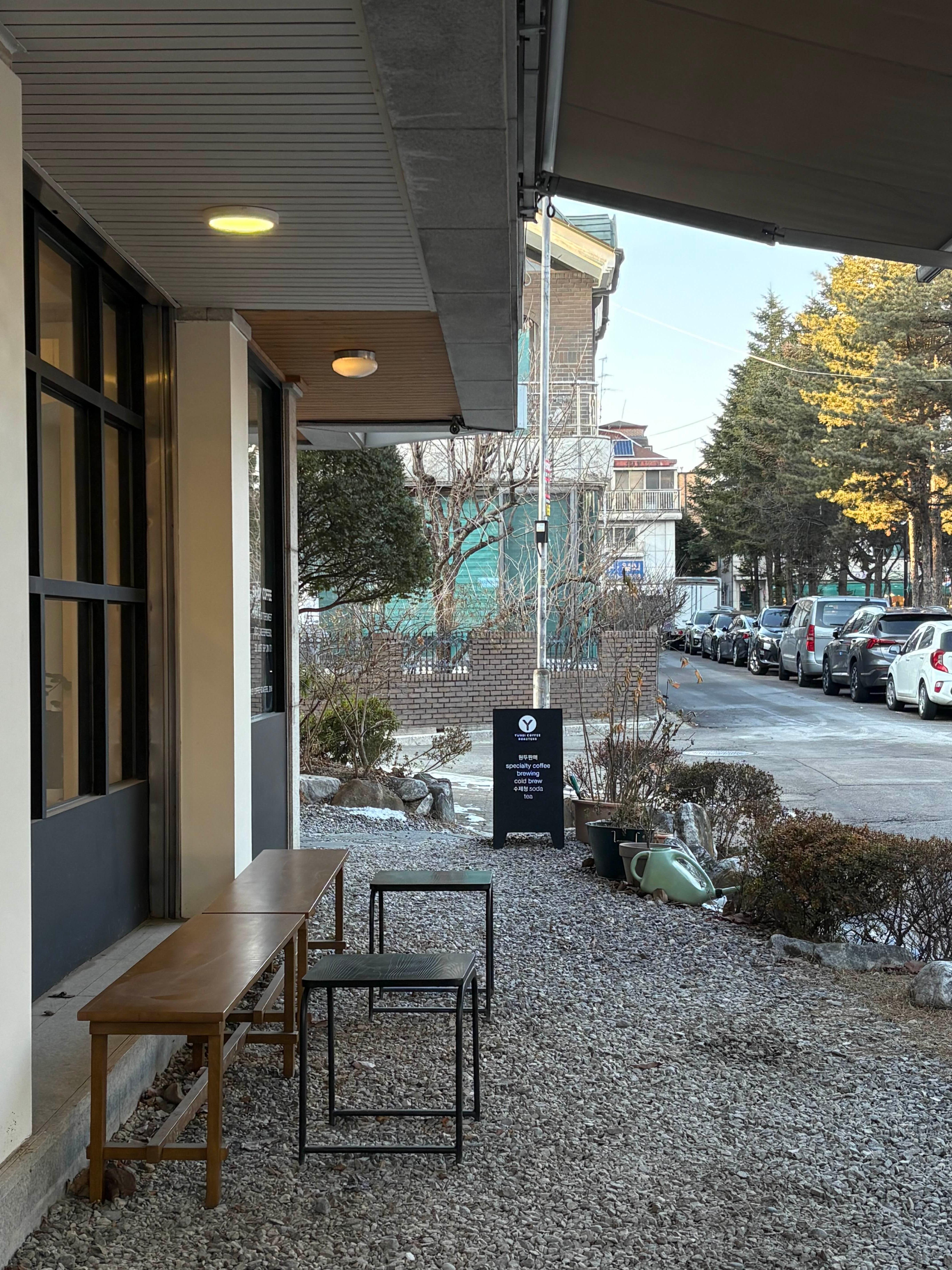외부에도 좌석이 존재했는데 아직은 겨울이라 그런지 아무도 안 앉으시더라고요!