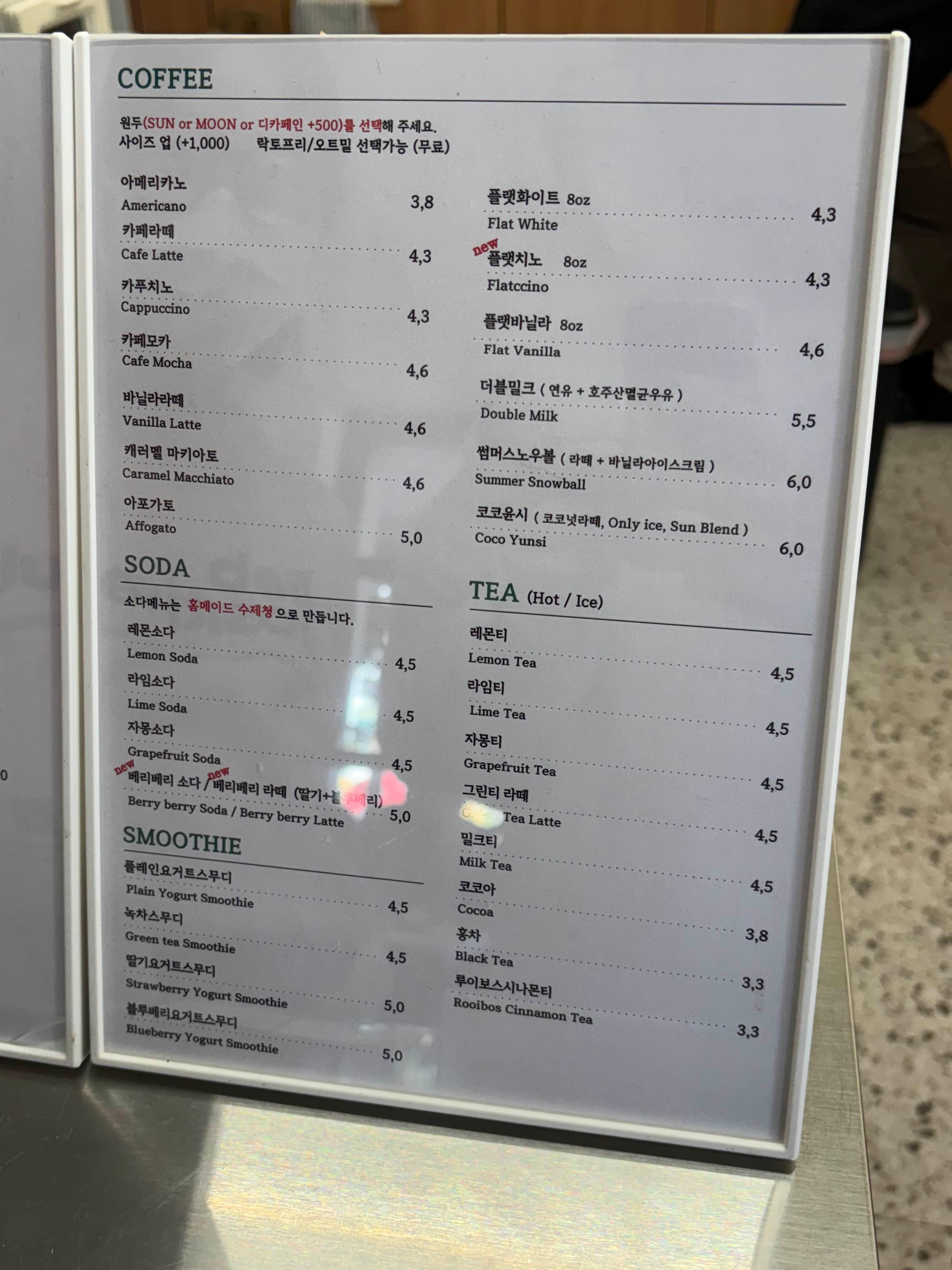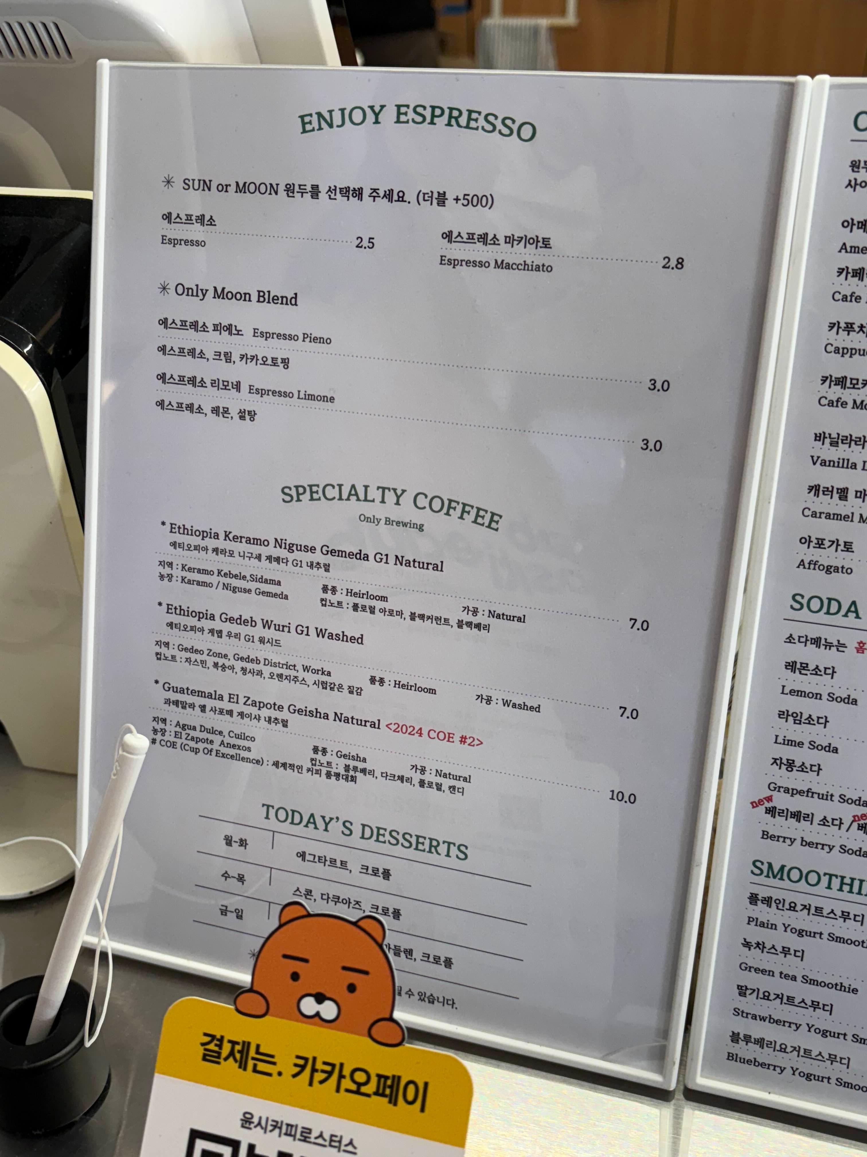 윤시커피로스터스의 메뉴판입니다!