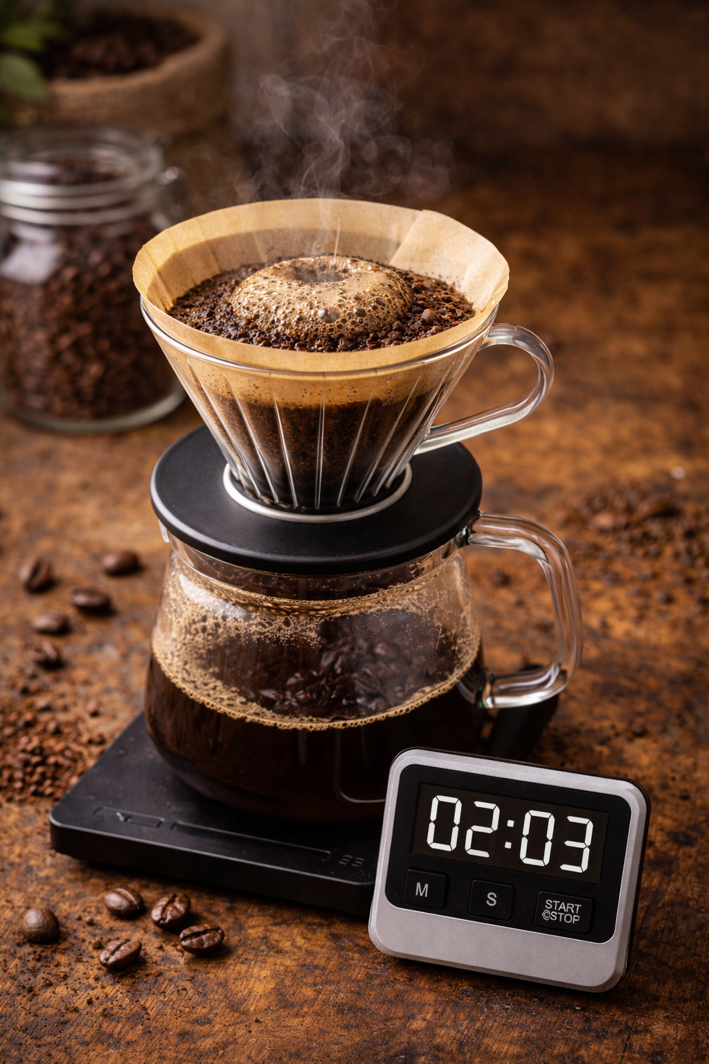 핸드드립이 잘 안 될 때는 레시피를 전부 바꾸기보다 추출 시간부터 점검해보는 것이 좋습니다.