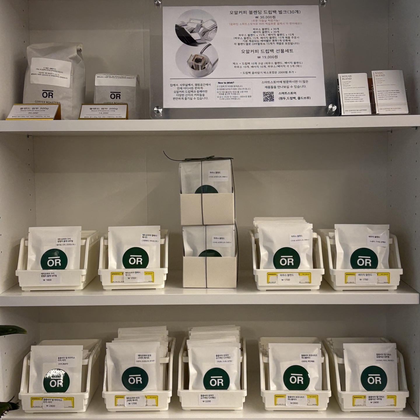 사장님께서 직접 로스팅하고 제작하신 드립백 판매 공간도 있었는데요!