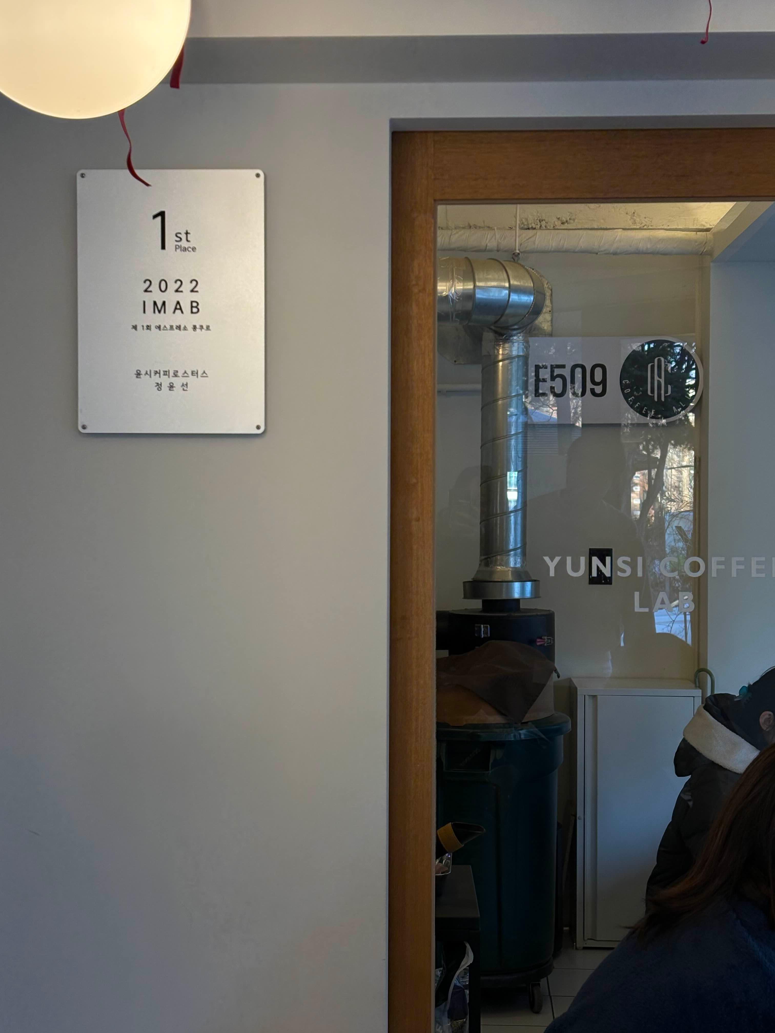 문 앞에는 윤시의 바리스타분들의 수상 경력이 붙어있는데요!