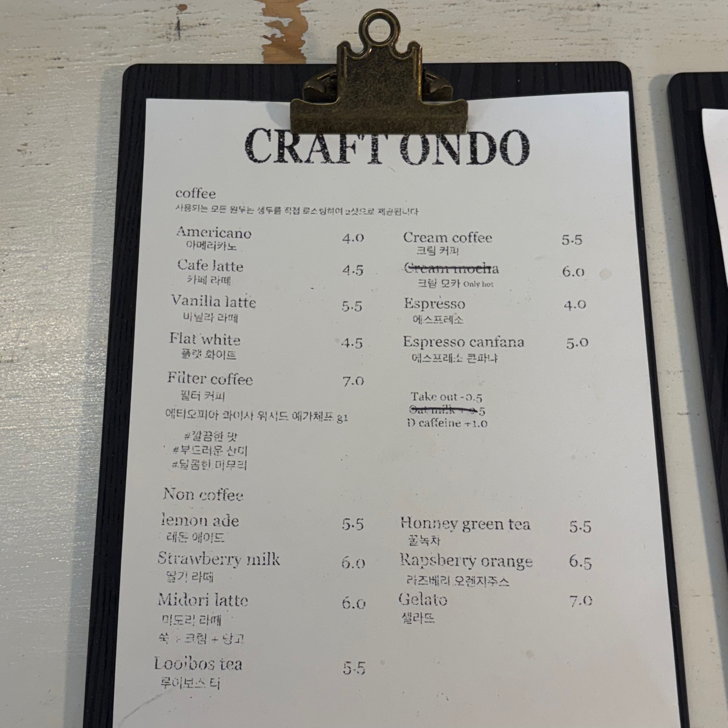 메뉴판에 적힌 문구를 보니 생두를 직접 로스팅하신다네요!