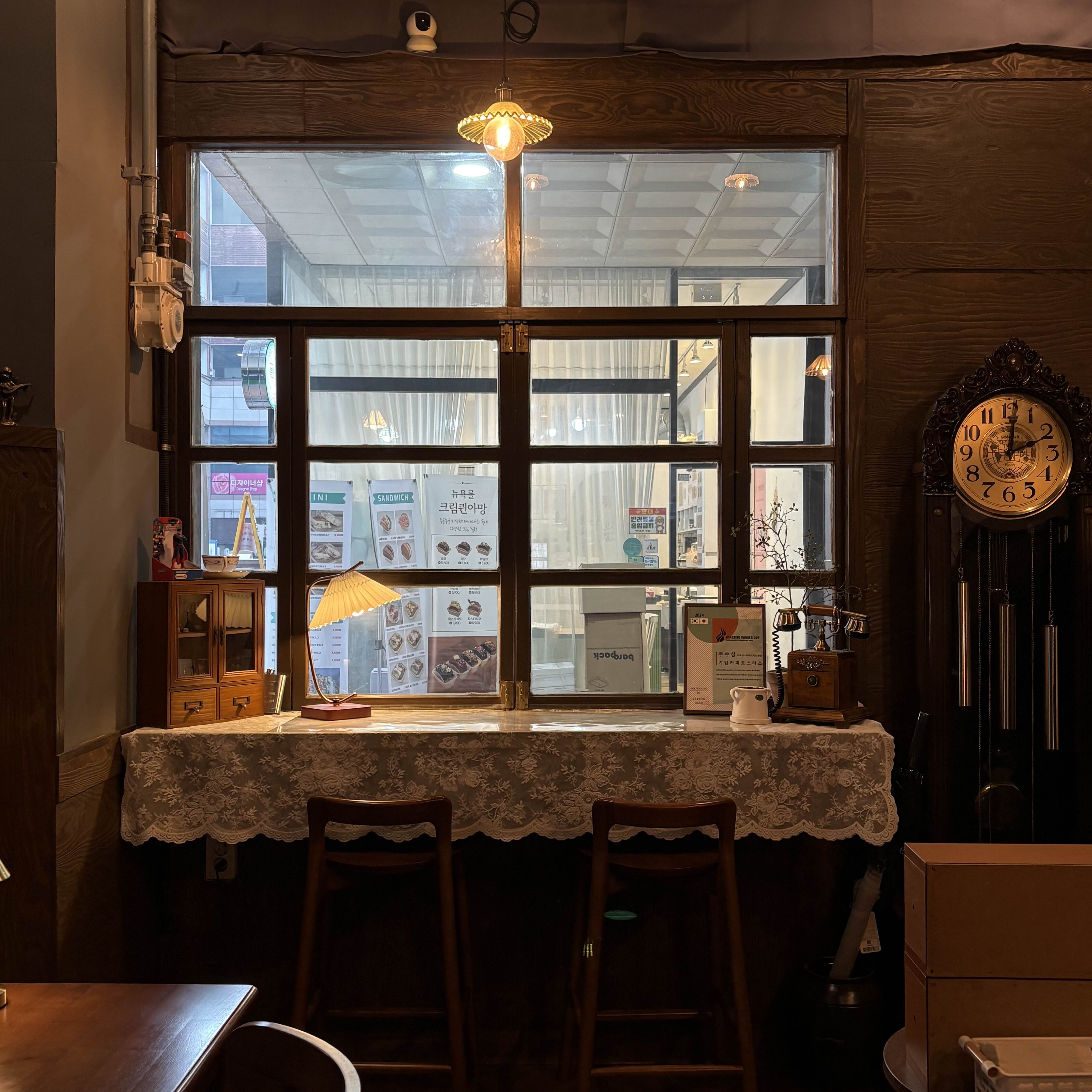 창가자리에 앉아 지나가는 사람들을 구경할수도, 책을 읽을수도 있는 개인적인 자리,